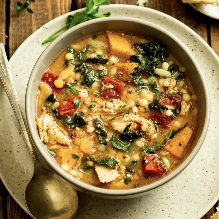 Warm up with this hearty Fall Chicken Stew, packed with tender chicken, wholesome veggies, and cozy herbs in a savory broth. It’s a lighter take on classic comfort food — nourishing, full of fall flavor, and easy enough for a weeknight dinner.