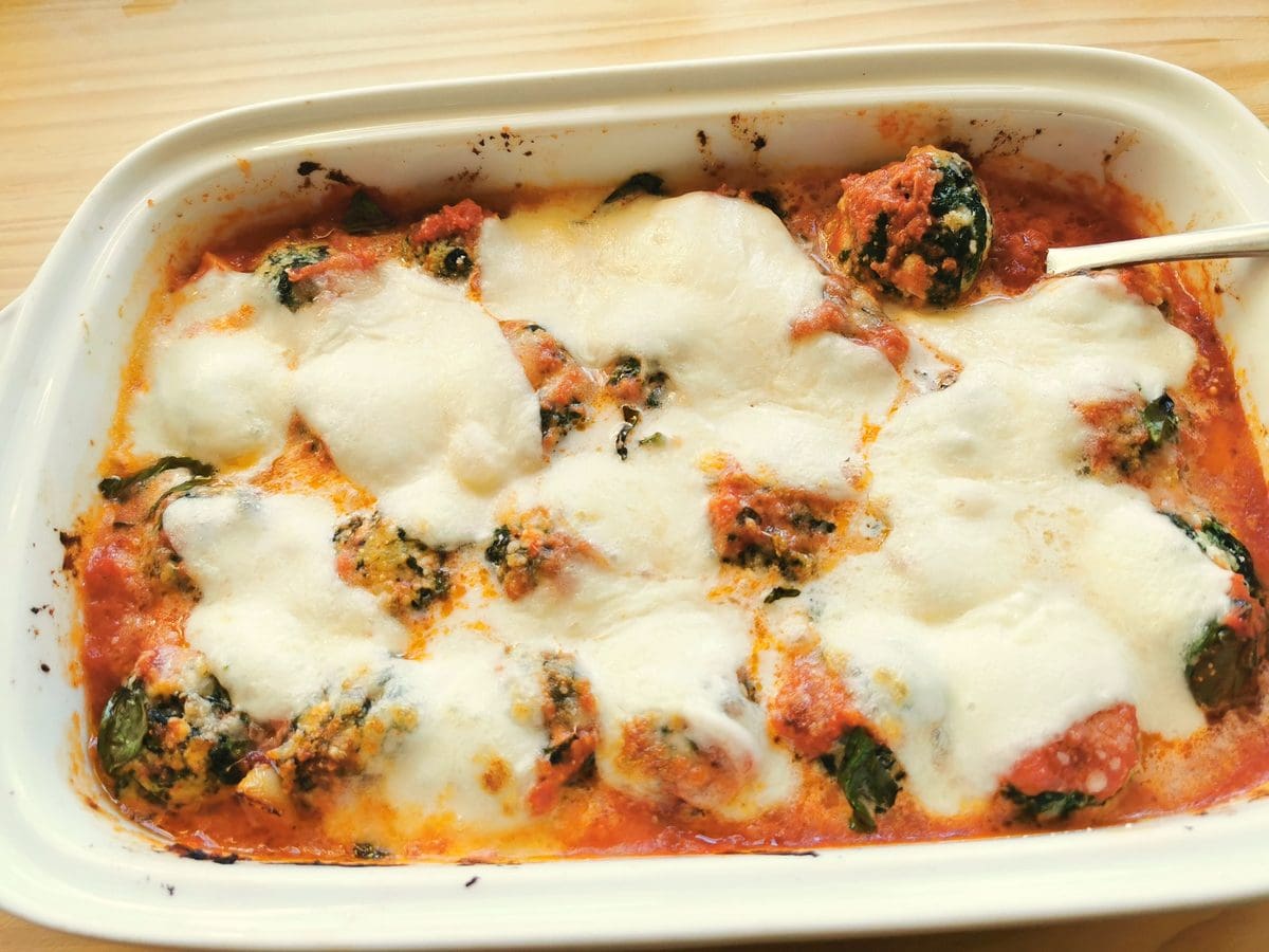 In this baked Tuscan gnudi (malfatti) recipe, melt-in-your-mouth spinach and ricotta dumplings from Tuscany are cooked in a delicious homemade tomato sauce with mozzarella. However, you can also serve your gnudi with just browend butter and fried sage or tomato sauce without baking.