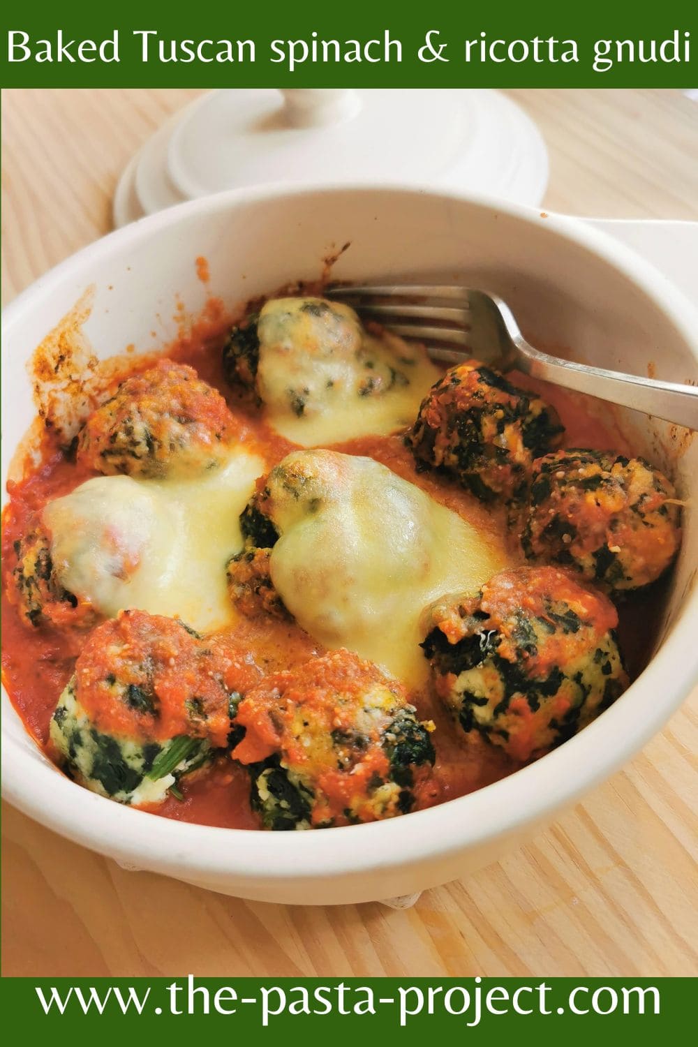 Second way: Follow all the recipe instructions and serve your baked Tuscan gnudi al forno in a homemade tomato sauce with melted mozzarella!