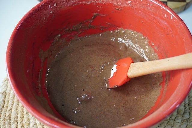 6)Use a spatula to scrape the sides and bottom so it is combined well.