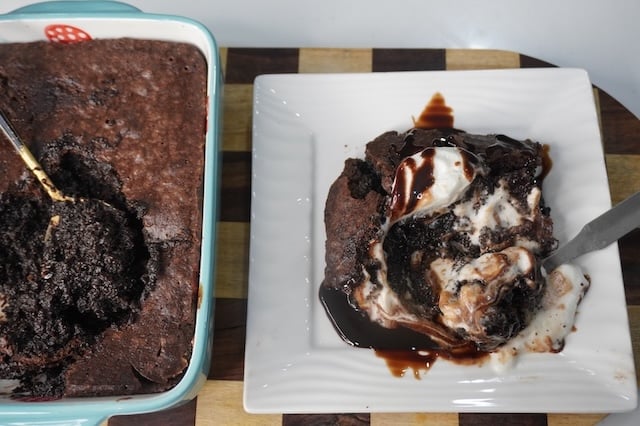 Brownie pudding is best served warm. The centre stays soft and gooey and taste so good when paired with vanilla ice cream. Store leftovers covered in the refrigerator for up to 3 days. Reheat gently before serving for the best texture.