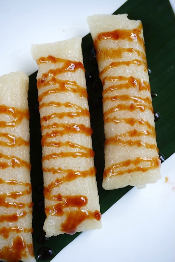 Serve this warm filipino suman with a drizzle of caramel sauce, condensed milk or top it off with brown sugar. Along with it serve some fruits like mango or banana.Â