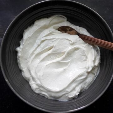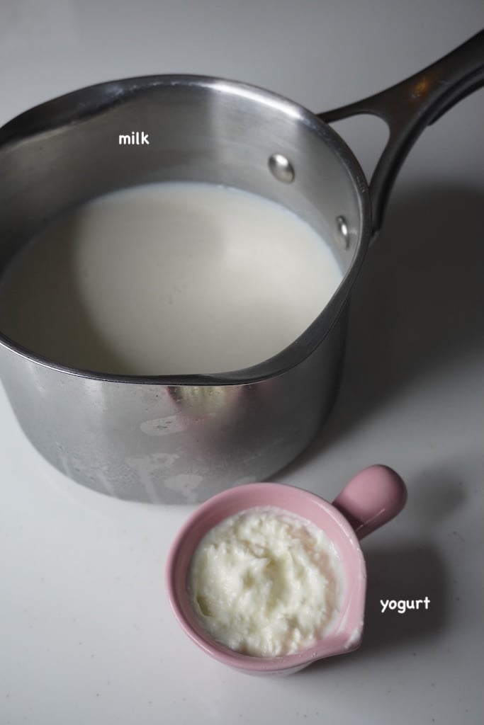 For making greek yogurt use few spoons of yogurt from your previous batch. You can use store bought yogurt if you don’t have leftover yogurt or you are making yogurt for the first time. Even though store bought curd can be used. But it is best to use homemade yogurt for making greek style yogurt or any yogurt for perfect thick set.