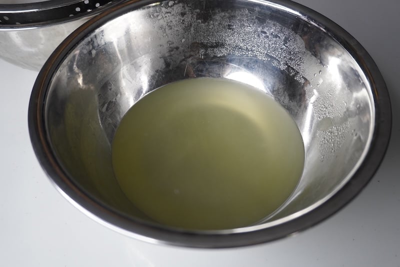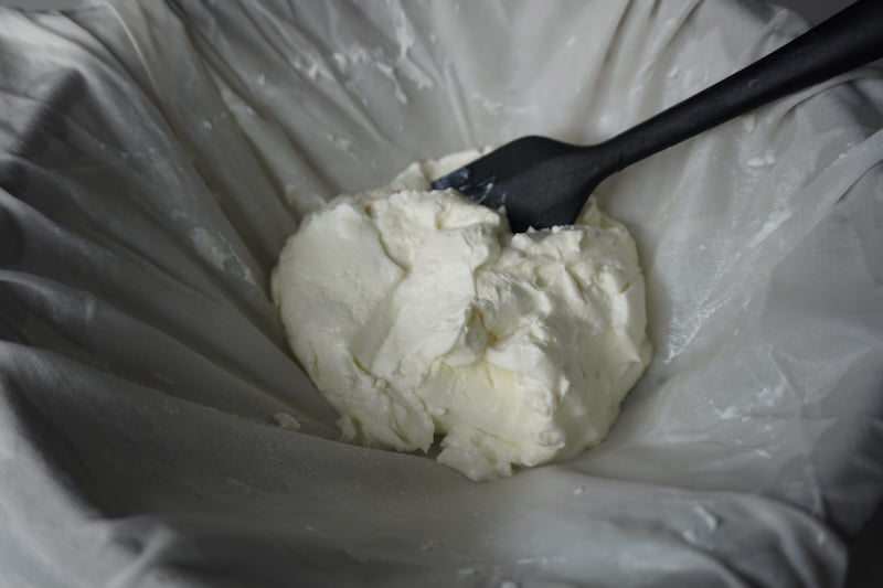 6)Place a colander over a bowl, line the colander with cheesecloth.