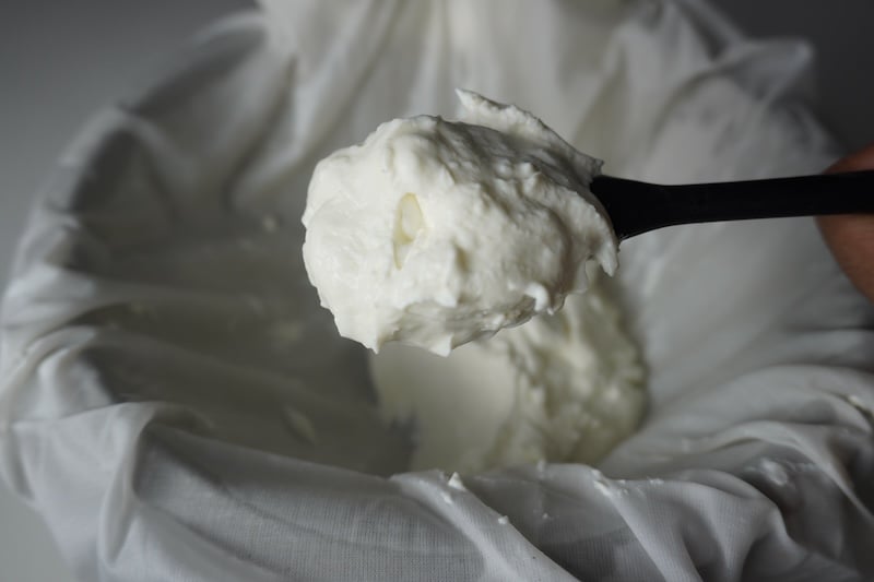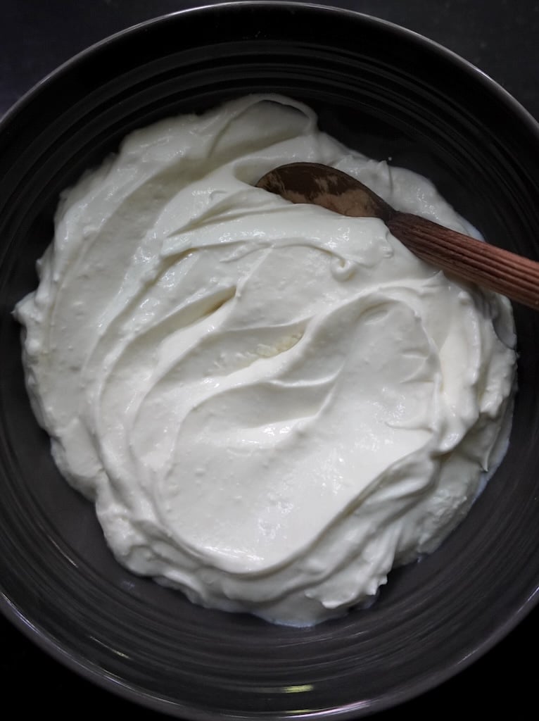 9)After 4 hours, this is how the greek yogurt looks. Thick and creamy.