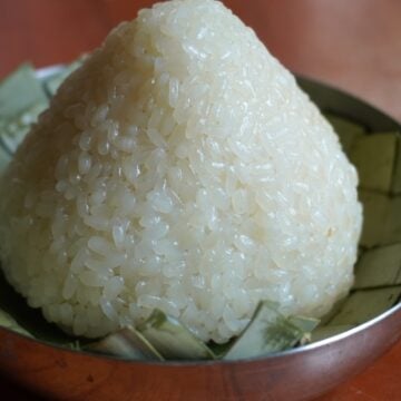 Sticky rice, also known as glutinous rice or sweet rice, is a special variety of rice that becomes beautifully soft, chewy, and sticky when cooked. Sticky rice is the main ingredient in mango sticky rice, sushi and other popular recipes. Cooking sticky rice is definitely the most tricky part. In this blog post, I have shared perfect way to cook sticky rice using steamer and a sauce pan.Â