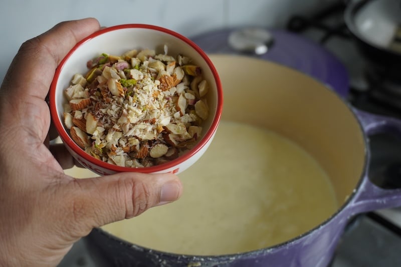 Nuts – use a combination of almonds, pistachios, cashews in the Rabri for best taste.Â