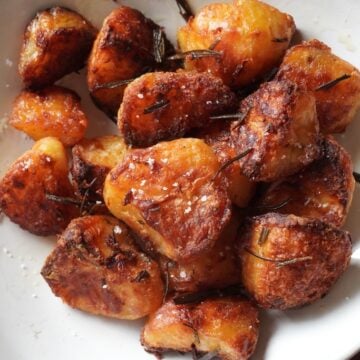 Perfect Roast potatoes is one of those simple comforts I never get tired of. Crispy on the outside, soft and fluffy inside tossed with rosemary, salt, and cooked in ghee. Whether it’s a side dish or a snack, this crispy and golden roast potatoes is perfect for your Christmas or Thanksgiving Dinner.