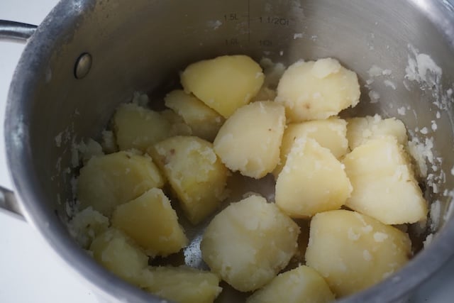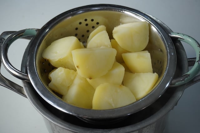 9)Now strain the potatoes in a colander. Let all the water drain off.