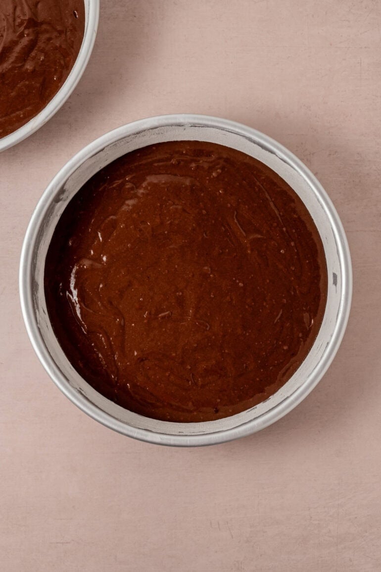 Pour batter into a buttered and floured cake pans- two 9-inch cake pans.