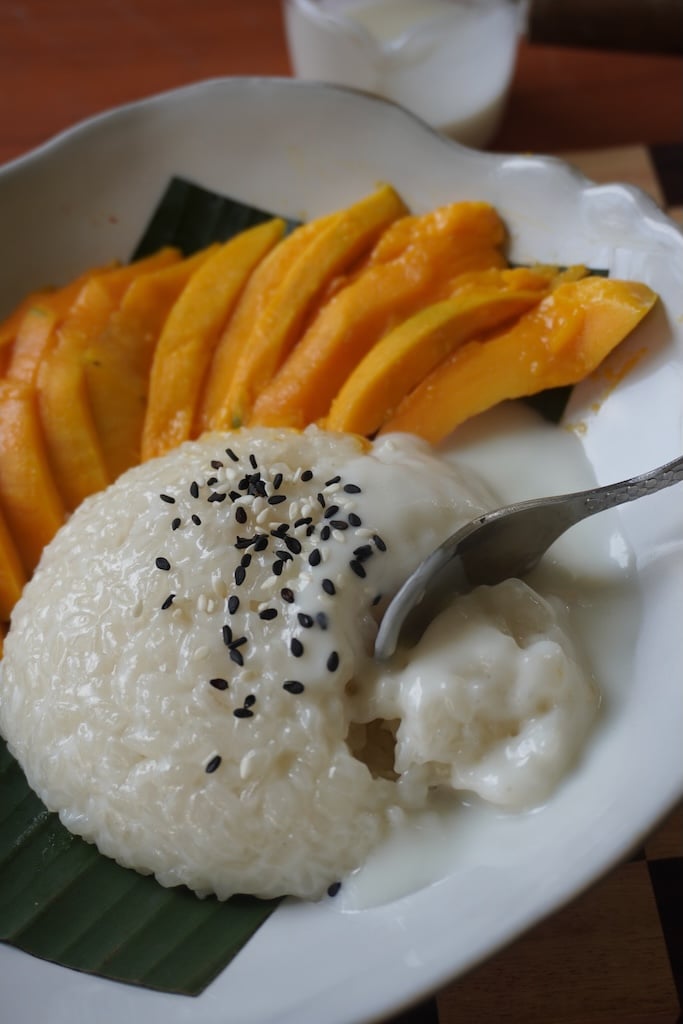 Summer is the peak season for mangoes in India, and the sweet, juicy fruit is a perfect match for the sticky rice. As mentioned earlier, my mother used to have with regular rice and mango. It’s like a Thai-Indo fusion recipe.