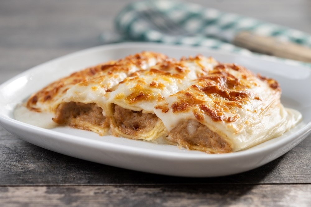 On a recent evening, I found myself craving mushrooms and decided to create a version filled with tender ground veal and earthy porcini. The filling is wrapped in pasta sheets, then blanketed with a silky béchamel sauce that I enhanced with a touch of porcini powder. That small addition intensifies the mushroom flavor and makes the sauce every bit as memorable as the filling. If you can’t find porcini powder in a specialty store, it’s easy to make your own by grinding dried porcini into a fine powder in a spice grinder or food processor.