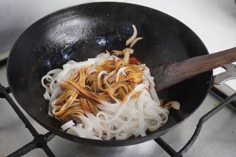 - Use flat rice noodles if possible. Fresh or wide dried rice noodles give the best chewy texture.