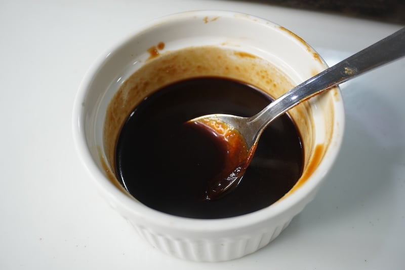 3)Mix soy sauce, dark soy sauce, oyster sauce, salt, sugar and vinegar in a bowl. Set aside.Â